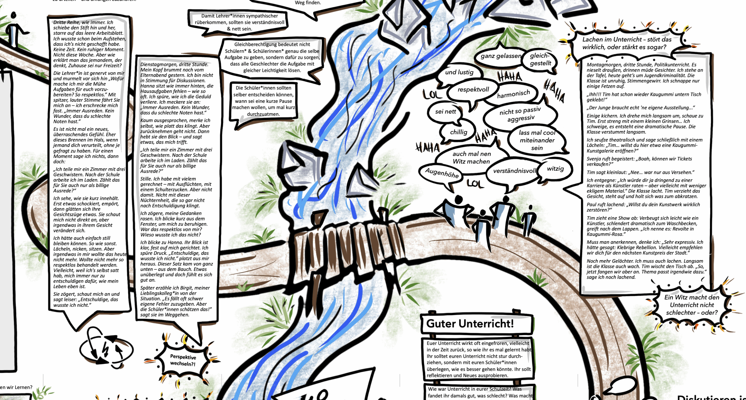 Nicht immer sehen wir, was hinter einer Situation steckt. Oft urteilen wir schnell – das ist normal. Wichtig ist, mit den Fehlern im Alltag – vor allem bei Diskriminierung – offen umzugehen. Vielleicht um Entschuldigung zu bitten, es vielleicht wieder gut machen. In jedem Fall ein Vorbild sein, wir machen alle Fehler. Und aus Euren sollten Schüler*innen lernen dürfen.